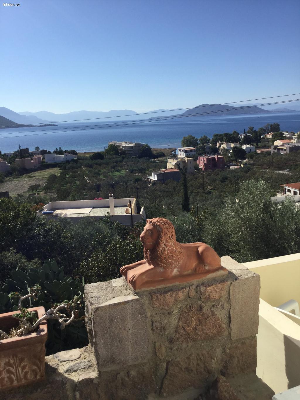 Du kommer in på övre planet i ett stort allrum med 2 balkonger där havet brer ut sig med Peleponnesos berg i bakgrunden. Mikro, diskmaskin, DVD, CDspelare, öppen spis, extra toalett. En spiraltrappa leder ner till 3 - 4 sovrum med utgång till terrassen med samma utsikt. Ett enkelrum , två dubbelrum varav det ena leder vidare till ett mindre dubbelrum. AC i hela huset. WIFI ingår. I trädgården liten men läcker pool med jacuzzi där du kan ligga och se de fantastiska solnedgångarna över havet. Ta ett glas från den lilla poolbaren och njut. Det är vårt andra hem så vi tar väl hand om det.