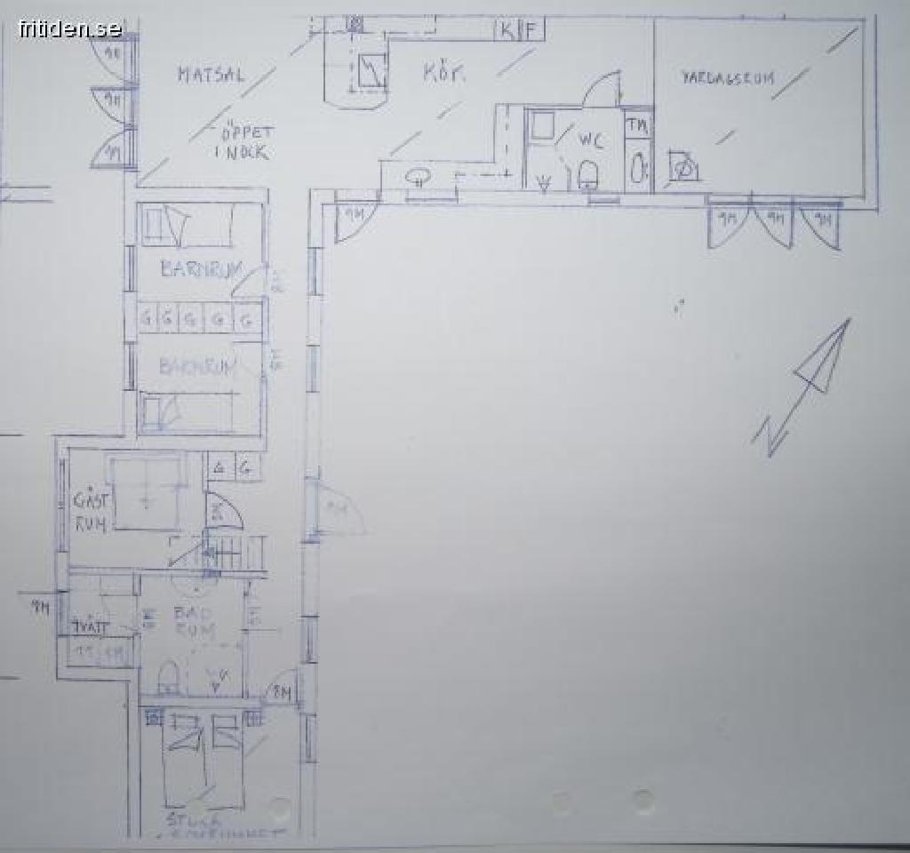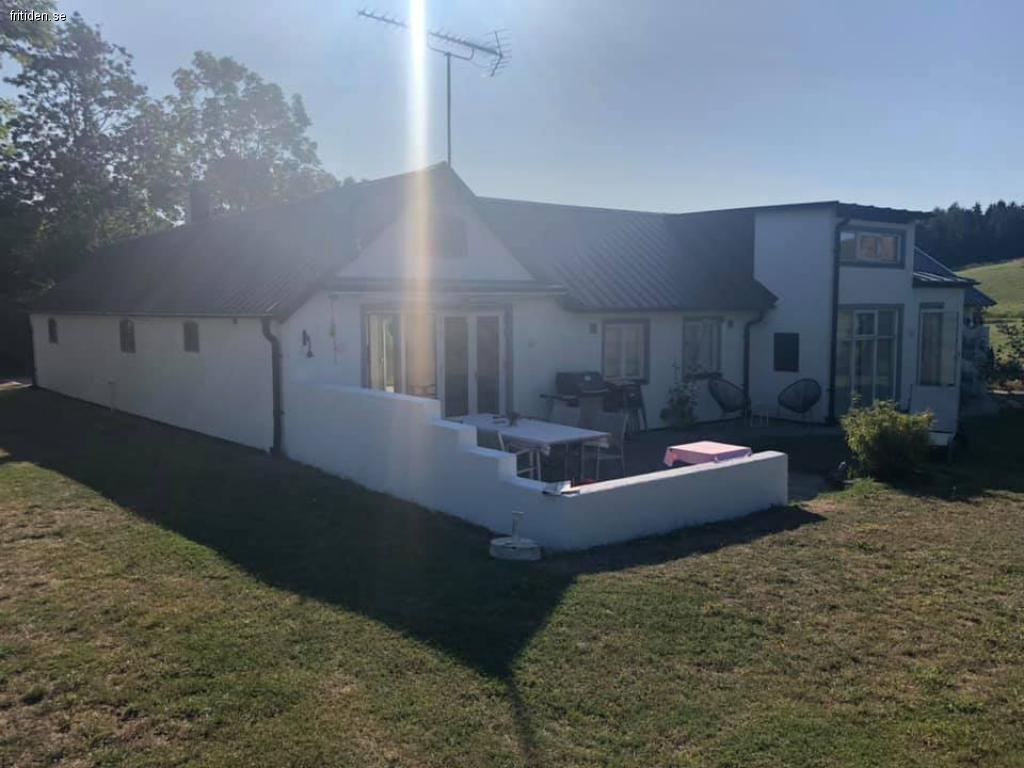 Huset omgärdas av en naturtomt med flera sköna uteplatser och mycket plats för utelekar. Huset består av fyra sovrum; sovrum 1 har dubbelsäng 180x200, sovrum 2 har en bäddsoffa som bäddas ut till en dubbelsäng 160x200, sovrum 3 har en dubbelsäng 140x200 och sovrum 4 har en våningssäng. Vidare finns det två badrum med dusch/toalett samt tvättmaskin, ett modernt och rymligt kök med spis/ugn, kyl/frys, kaffekokare, mikrougn och diskmaskin samt en stor öppen och ljus matplats. I vardagsrummet (med stora panorama fönster mot backarna) finns en soffgrupp, tv och öppen spis. I en del av huset finns ett innertak med ett sovloft med plats för 2 personer (endast avsett för vuxna då man når loftet via en stege). Totalt rymmer huset 10 sängplatser och det finns tillräckligt med sittplatser och porslin för alla.