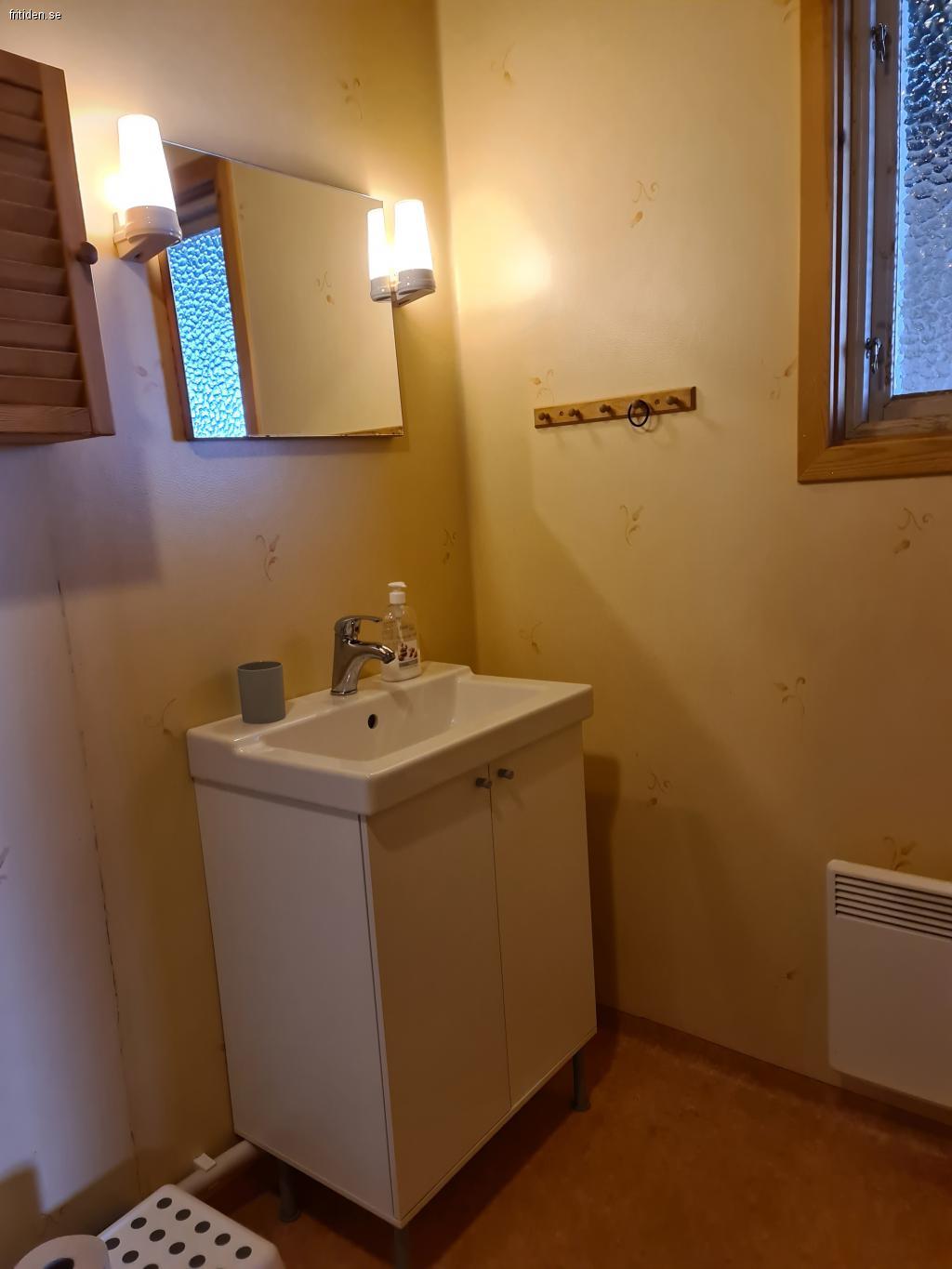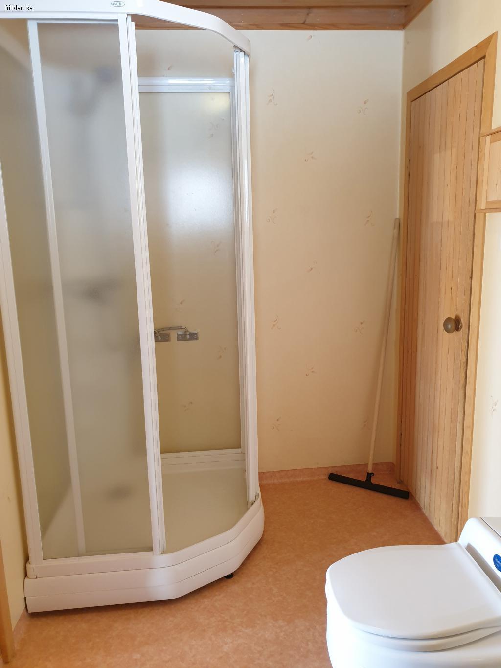 Stugan består av hall, badrum med separettetoalett, handfat, dusch och bastu.