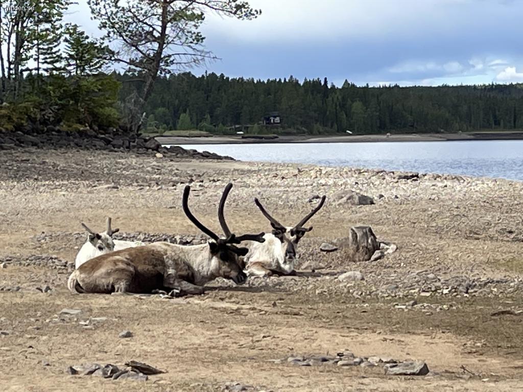 100 m till Lofssjön med tillgång till delad badplats där du oftast är själv. Idealiskt att ta sig med skoter och skidor från stugan då leder finns nära.