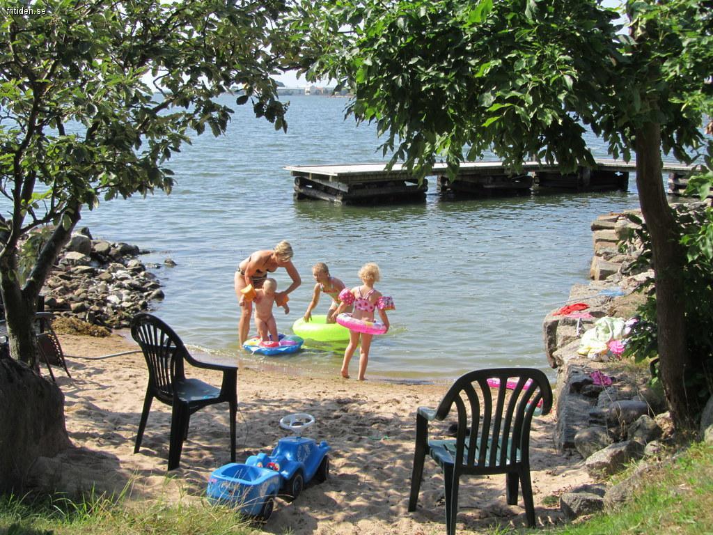 Brygga utanför huset med badstege från vilken man kan simma ut. Kommunalt friluftsbad med sandstrand på annan del av Hästö.