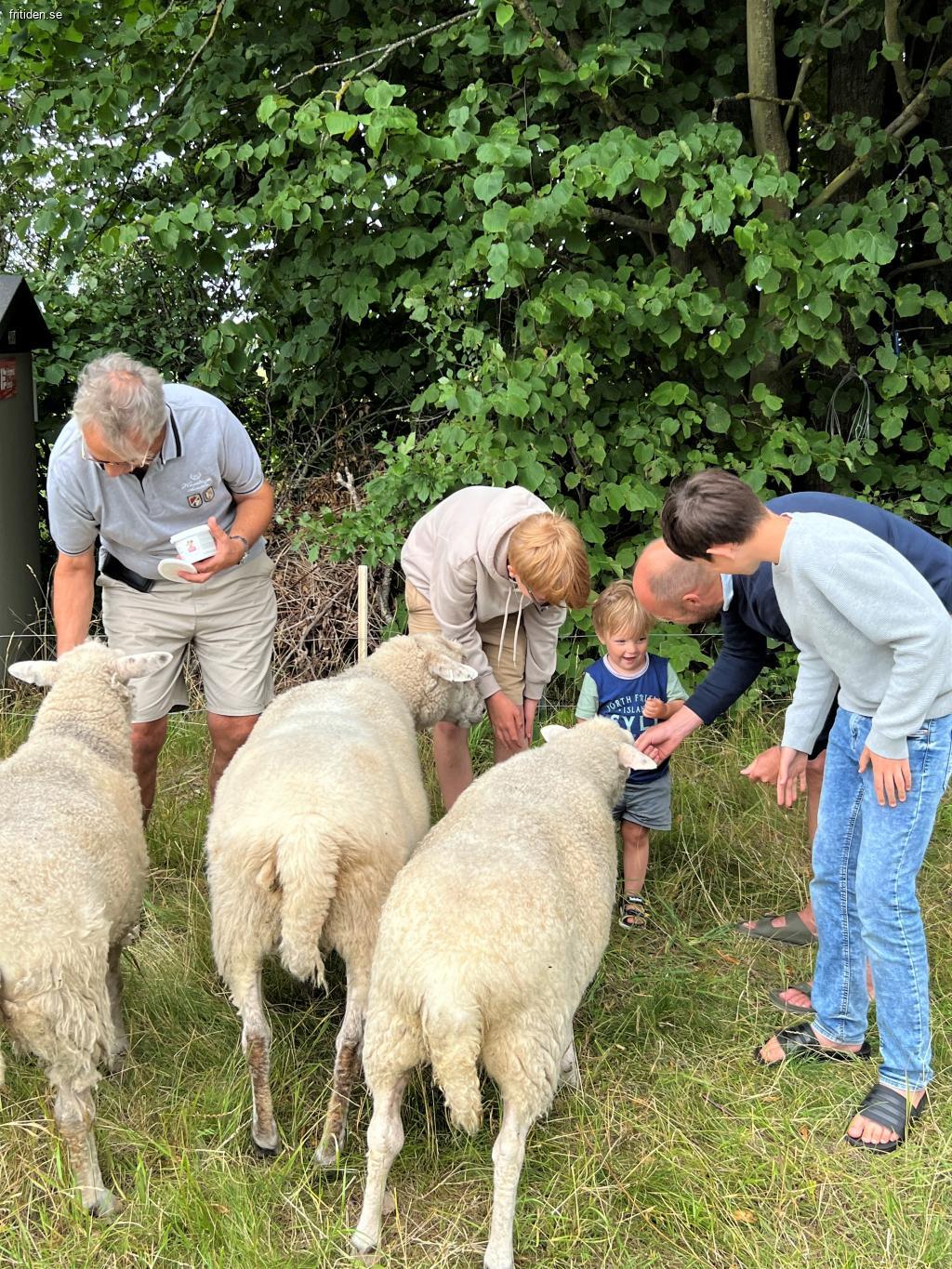 Barnvänliga djur, som får, kaniner och katter finns på gården.