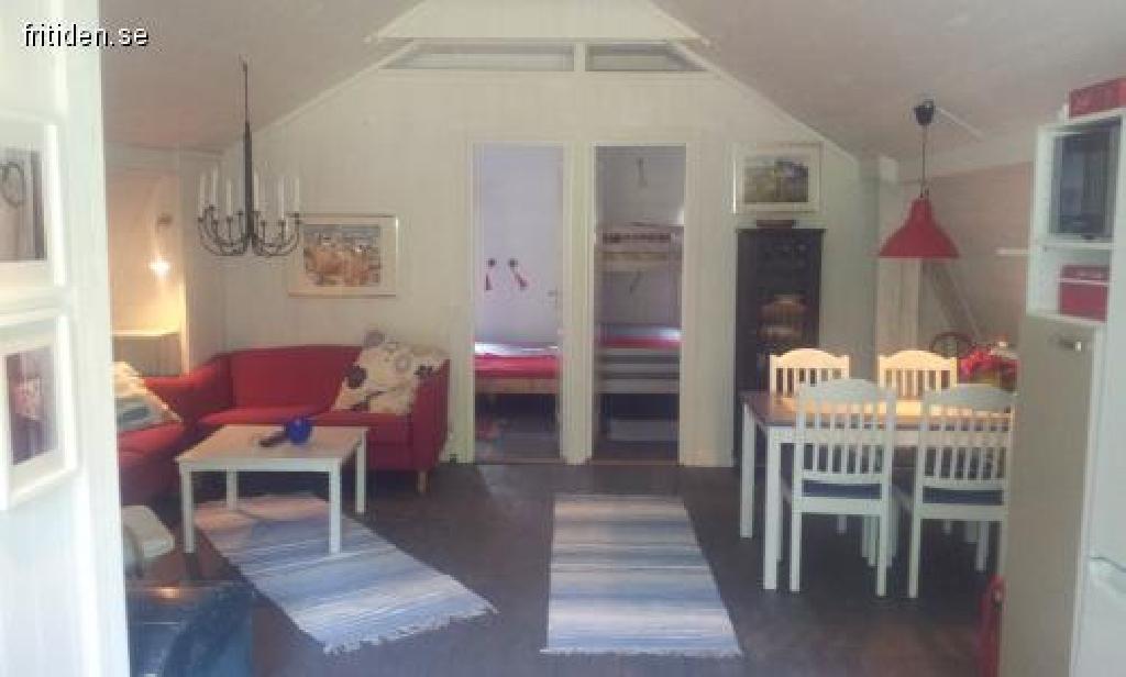 Kök med allrum och 2 sovrum. I köket har ni stor matplats och två soffor med TV. Ett sovrum har dubbelsäng samt enkelsäng. Det andra sovrummet har våningssäng samt enkelsäng. Möjlighet finns att sätta in extrasäng. Lakan och handduk kan hyras för 150 kr/person. Tvättmaskin finns. Badrum med WC/dusch.