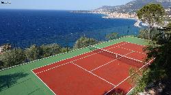Där italienska Blomsterkusten möter franska Azurkusten ligger Castello Grimaldi. Högst upp i slottet ligger en 70 kvm lägenhet i två plan med egen takterrass och strålande utsikt över Medelhavet. Slottet ligger i en privat park med prunkande växter, citron- och olivträd, en tennisbana samt en stor pool med egna solstolar som är öppen under högsäsong. Lägenhetens nedre våning består av en entré med hall, ett stort sovrum med två sängar och en fransk balkong med havsutsikt. I anslutning till sovrummet finns ett förråd med tvättmaskin, säkerhetsskåp och förvaringsutrymme. På samma plan finns även ett rymligt badrum. En trappa upp finns ett allrum med en utfällbar bäddsoffa för en eller två personer och ett avskilt kökspentry. Två stora glasade skjutdörrar leder ut till en ljusgård med en övre entré och en mindre toalett. Via en stentrappa i ljusgården kommer man upp till lägenhetens stora takterrass. Här finns gott om plats för att sitta och äta, sola och beundra utsikten i alla väderstreck. På terrassen finns en inbyggd grill och stora markiser att fälla ut. På smala trappor och stigar promenerar man på 10 minuter ned till den avskilda stranden Darsanùn eller populära Balzi Rossi med fina klippor intill. Några hundra meter bort passerar man gränsen till Frankrike och kan fortsätta på strandpromenaden i Menton. Här finns ett stort antal restauranger, caféer, affärer och en charmig medeltida stadskärna. En bit bort på italienska sidan ligger samhället Latte med en välsorterad livsmedelsaffär som bl a säljer italienska delikatesser och pasta över disk. Det är enkelt att ta sig till Grimaldi. Närmaste flygplats är Nice Côte d'Azur där tåget går direkt till Menton Garavan på mindre än en timma. Därifrån är det ca 1,5 km till slottet. Med bil från flygplatsen tar det ca 40 minuter och det finns en privat parkeringsplats på slottet. Sänglinne, sol- och badlakan, handdukar samt lätta solsängar att ta med till stranden ingår samt fritt WiFi och tillgång till två elcyklar. Lägenheten är rök- och husdjursfri. Bytesdag lördagar. Priser, inkl. slutstädning avresedagen: v. 18 - v. 22: 1500 EUR/vecka v. 23 - v. 37: 1700 EUR/vecka (högsäsong) Detta objekt har dessa bekvämligheter: